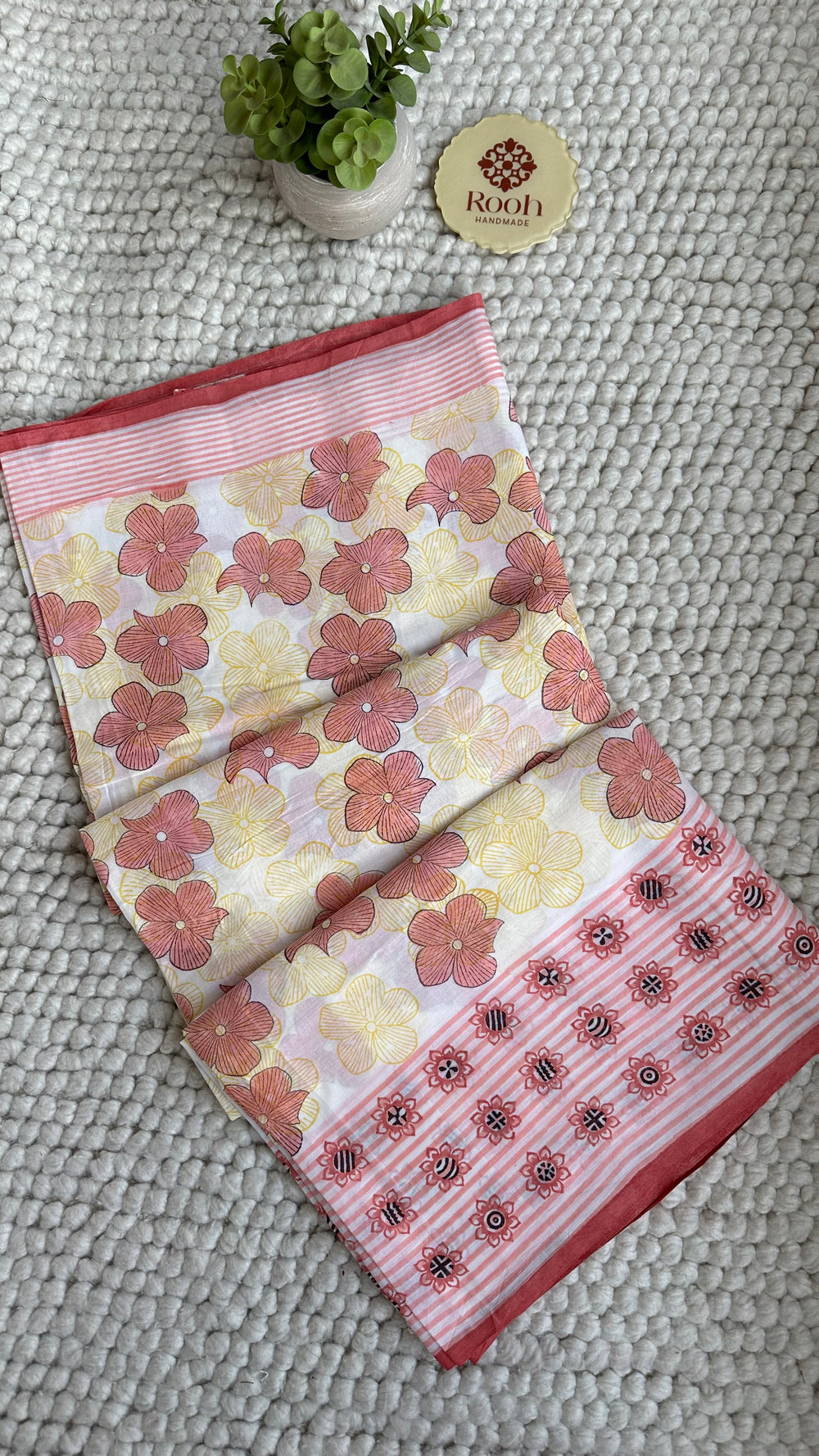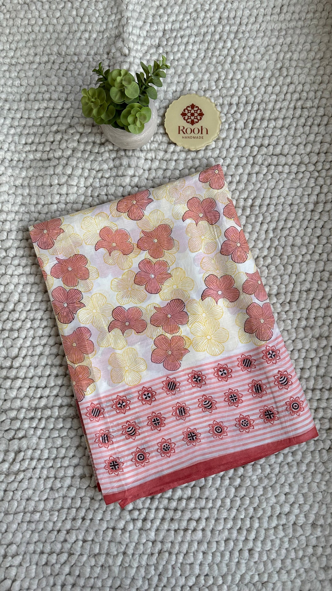 The Prints on the saree is very beautiful and refreshing. And material is so comforting soft and easy to wear and carry. Loved it ❣️
