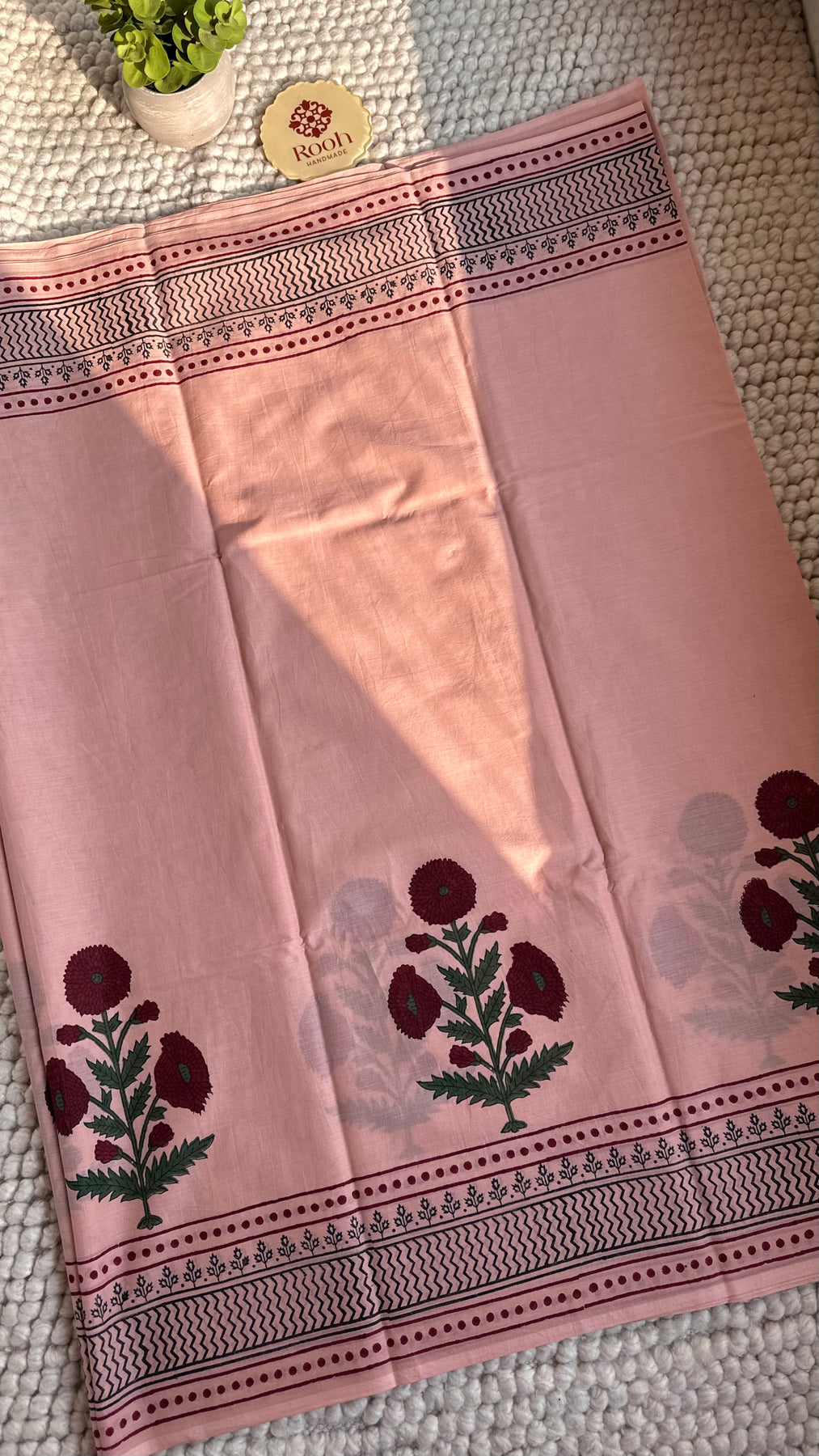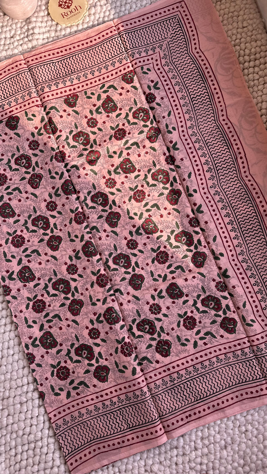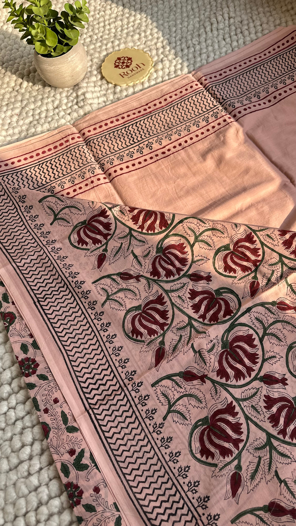 BAGRU HAND BLOCK PRINTED SOFT MULMUL COTTON SAREE- 095 (DISPATCH TIME IS - 12-15 DAYS)