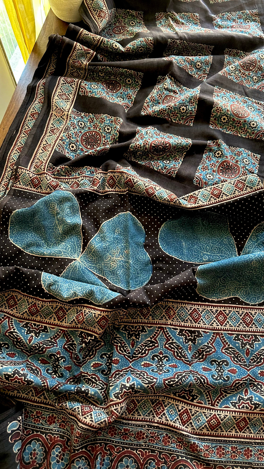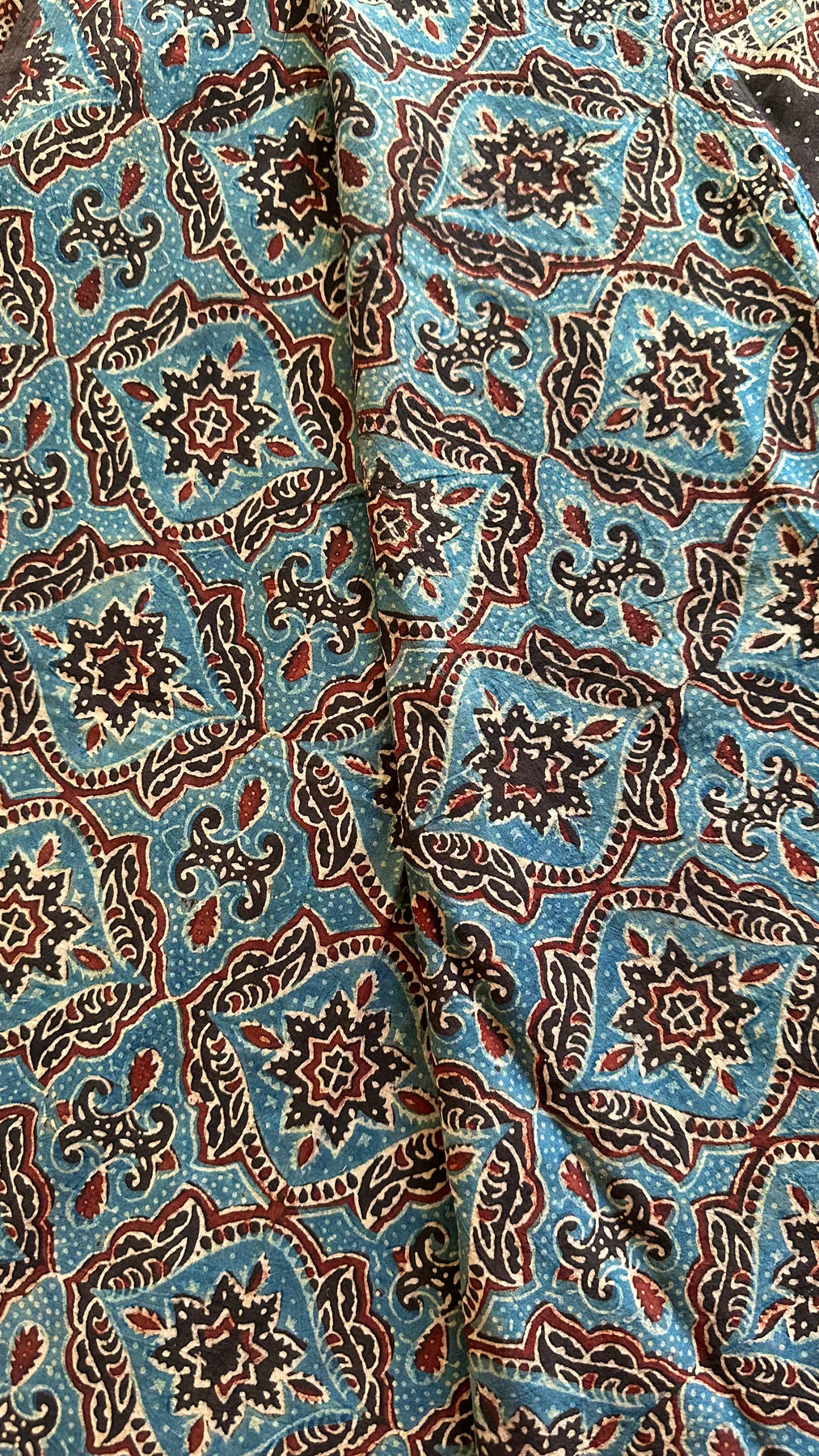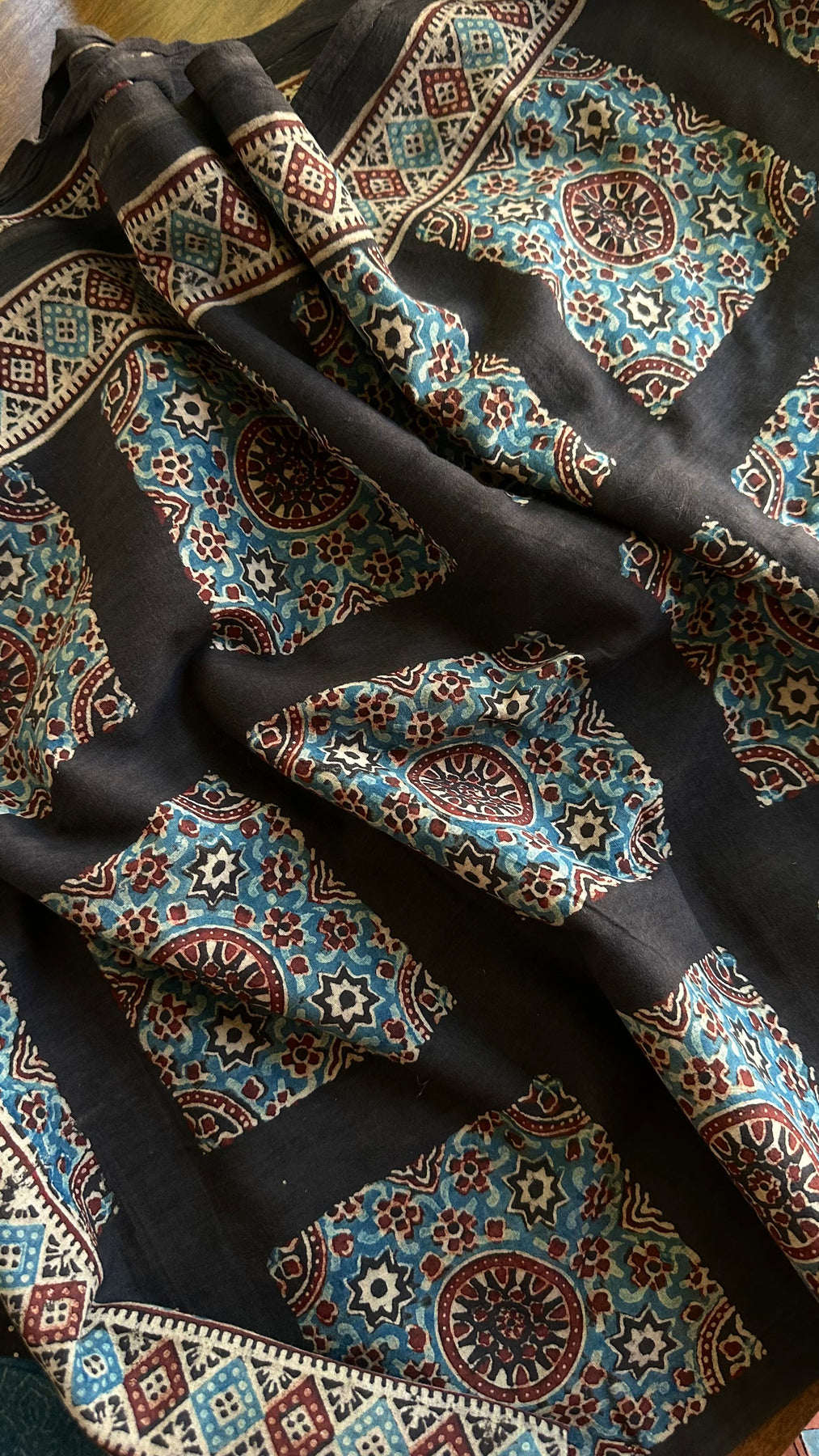 Hand Block Ajrakh print with Natural Dyes crafted by the Khatri Community from Kutch, Gujarat, India.