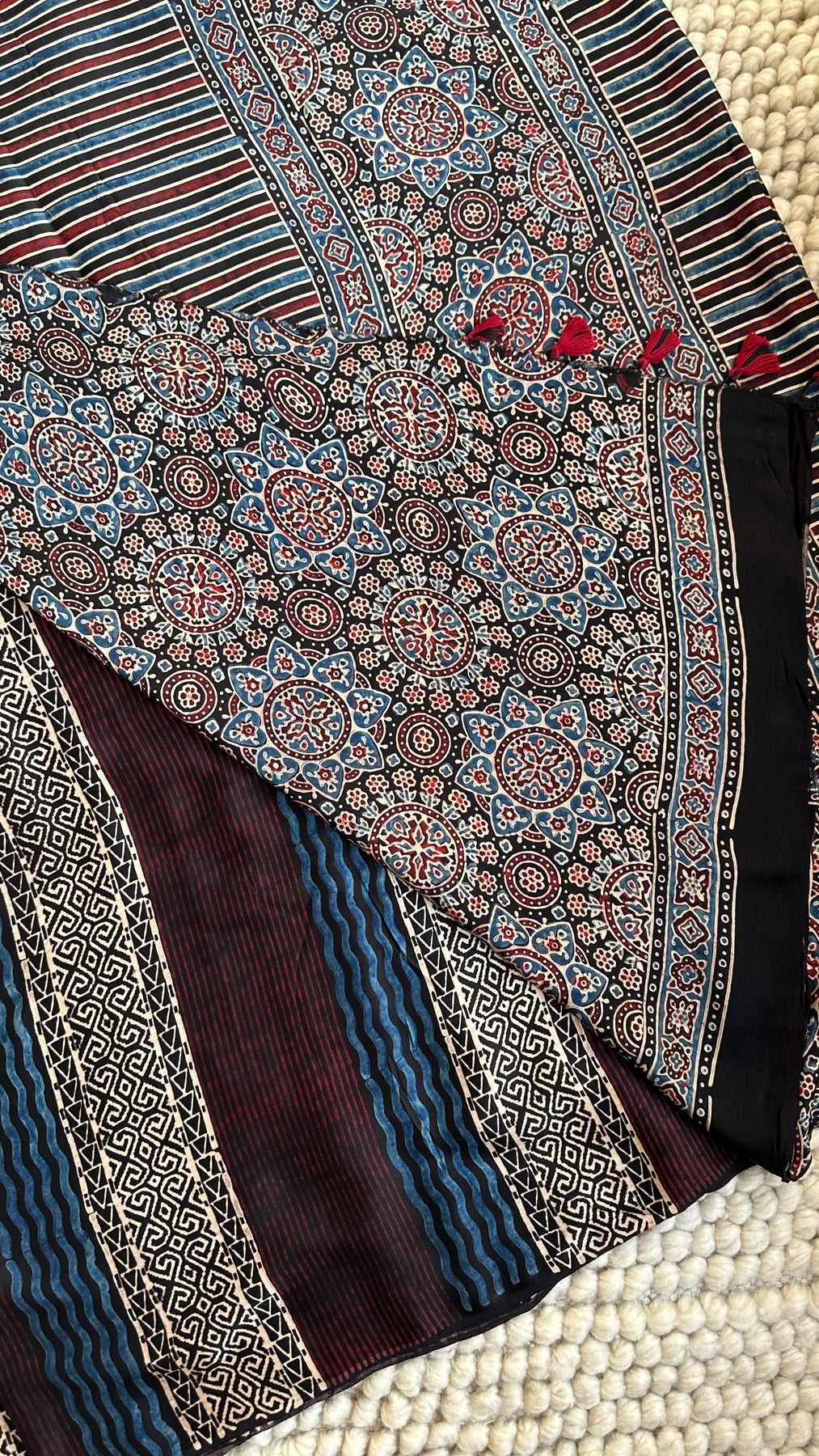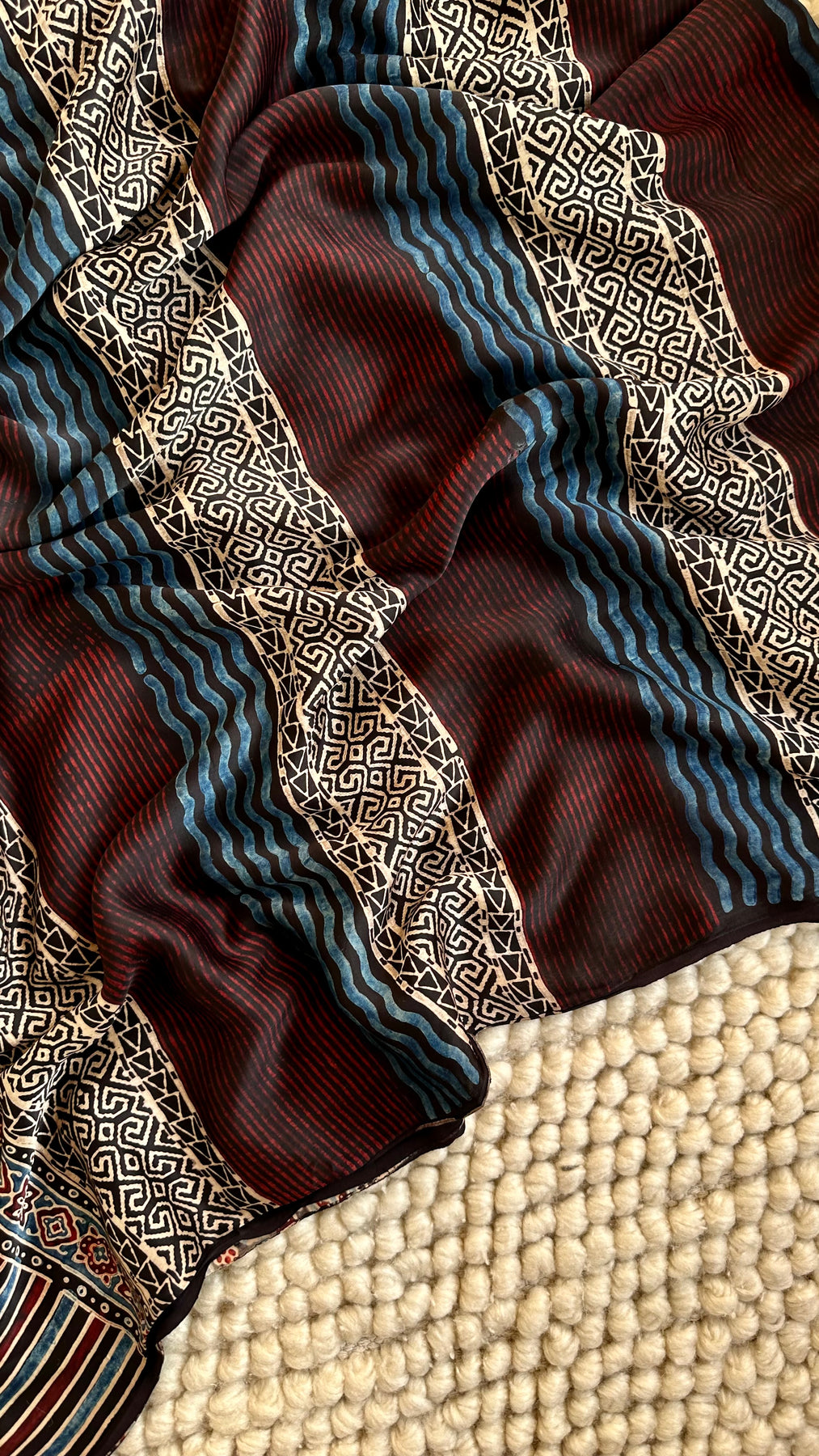 Hand Block Ajrakh print with Natural Dyes crafted by the Khatri Community from Kutch, Gujarat, India.
